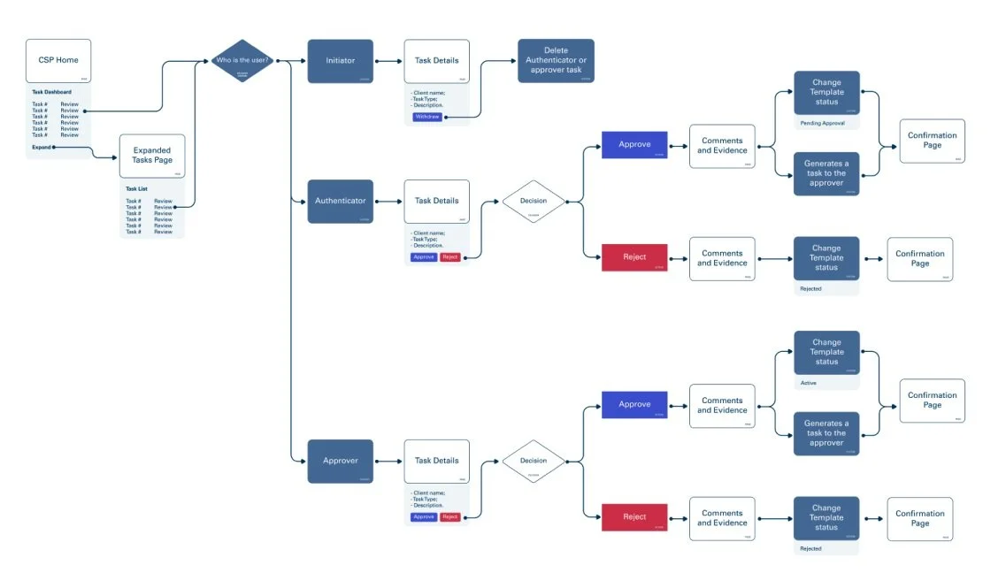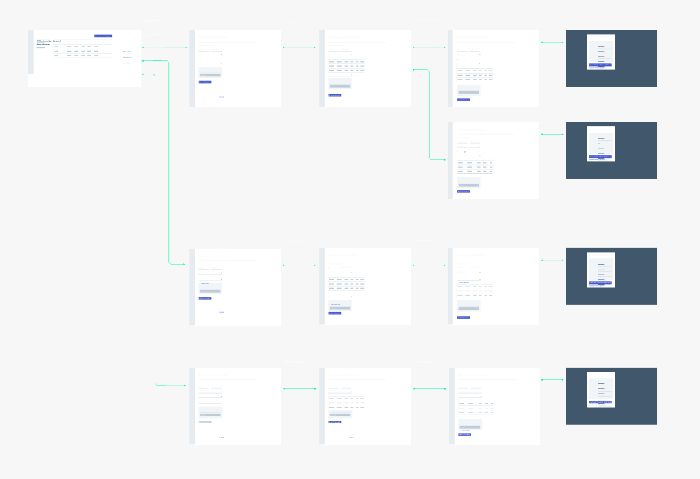 After digesting and understanding needs, risks, and possible limitations established by system or process rules, we were able to start mapping some flows and create a structure of information architecture that suits one or more hypotheses of solution.