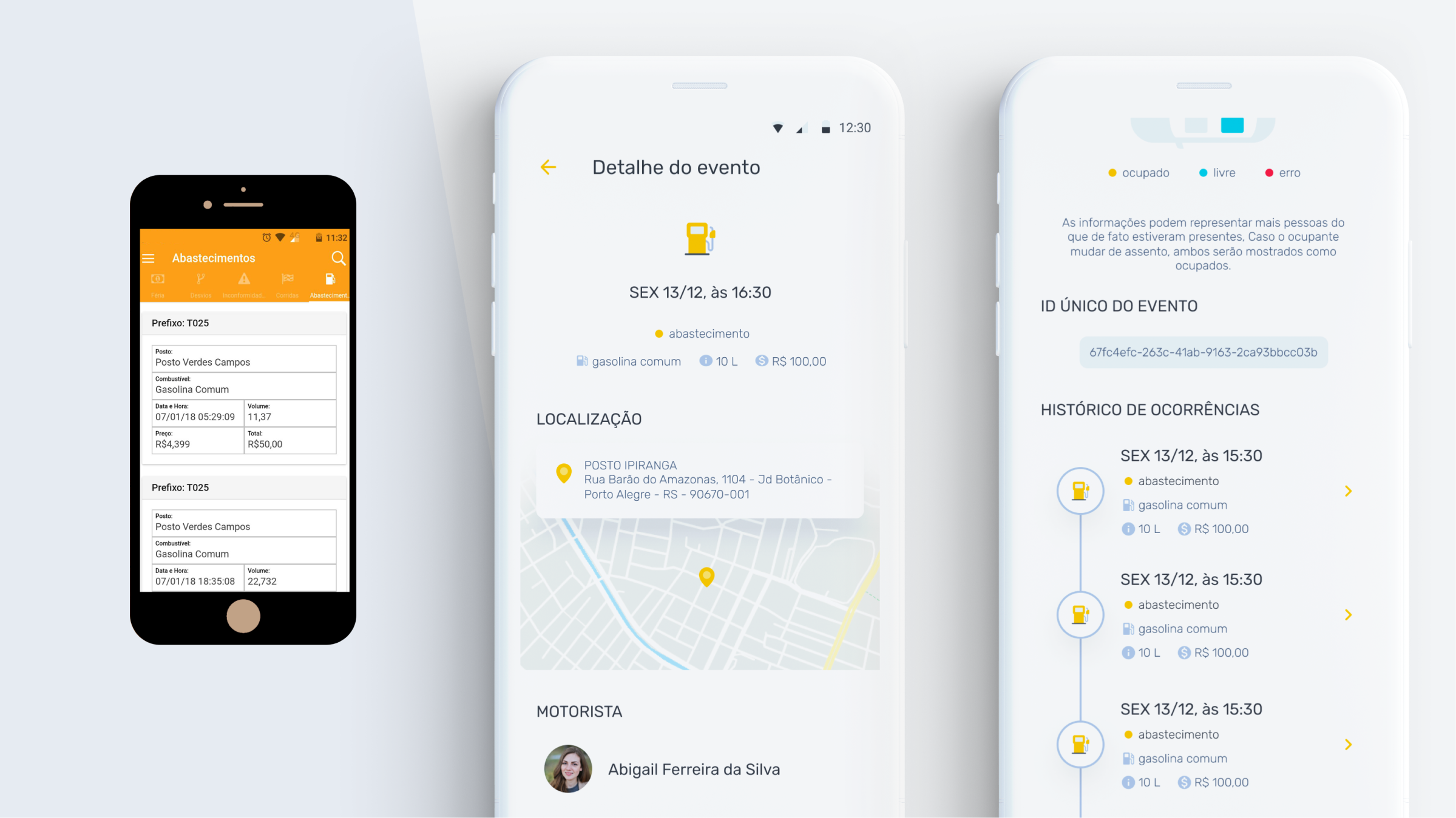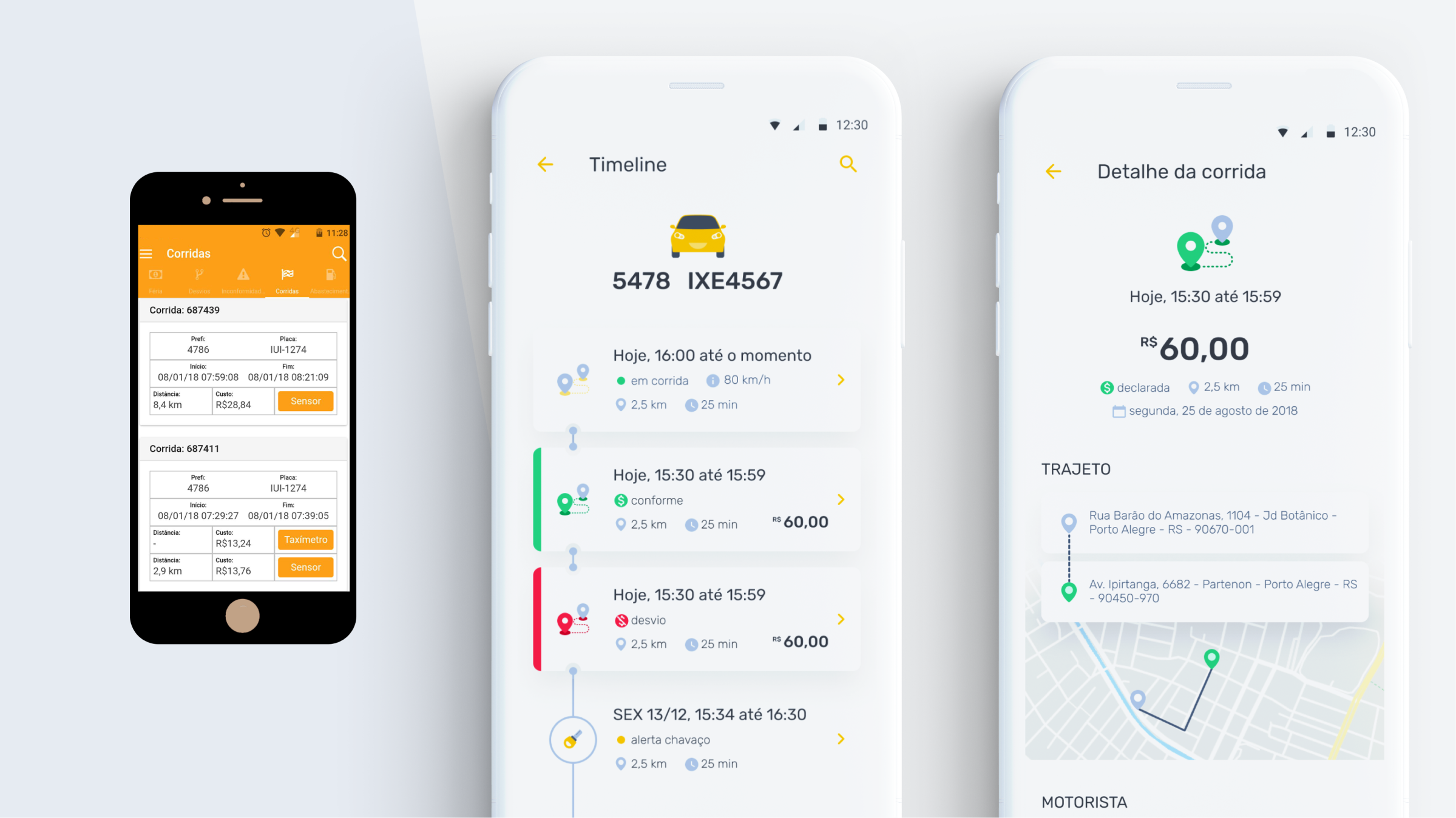 Users don't need to search for vehicles to see all the data related to them, now we can show your entire fleet activity, in real-time. Besides that, the drawer menu was designed to emphasize the three main features and easily provide important pieces of information.