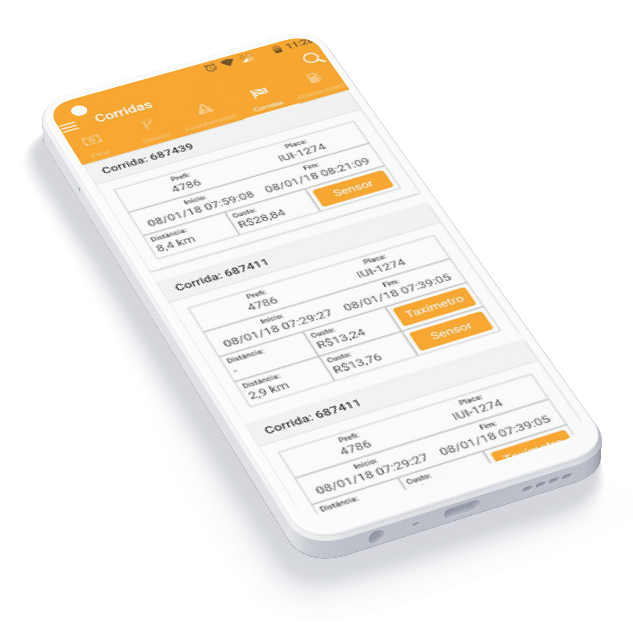 Each sensor has both specific and important information about the vehicle, the route, or the money involved in the operation, so I organized them by categories and importance for the driver: